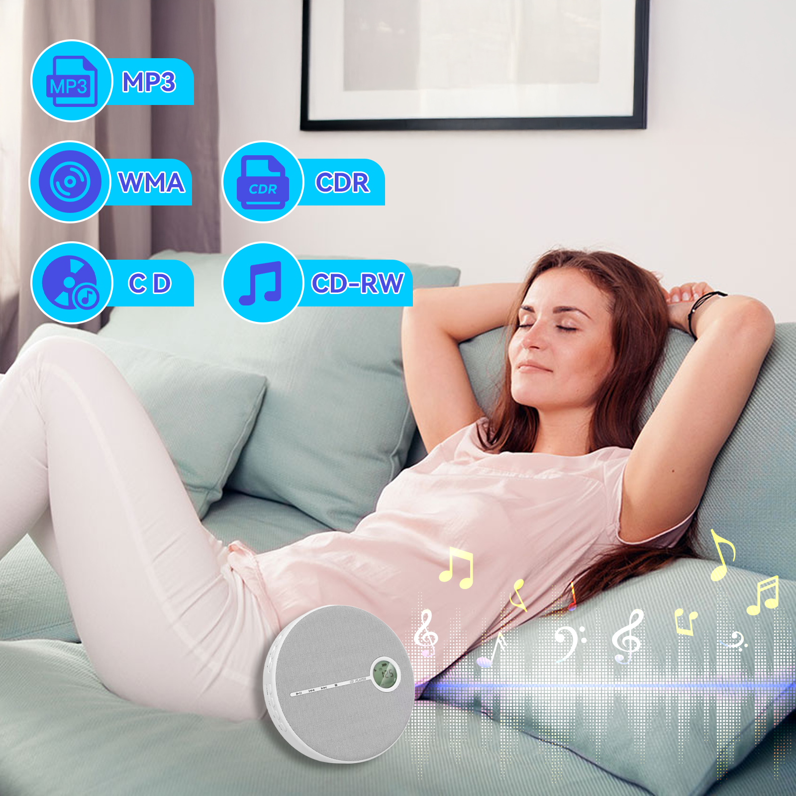 The Tayvos CD player supports multiple formats like MP3, WMA, and CD, ensuring you can easily play various audio files. Whether it’s music, podcasts, or audiobooks, it’s fully compatible to meet all your listening needs.